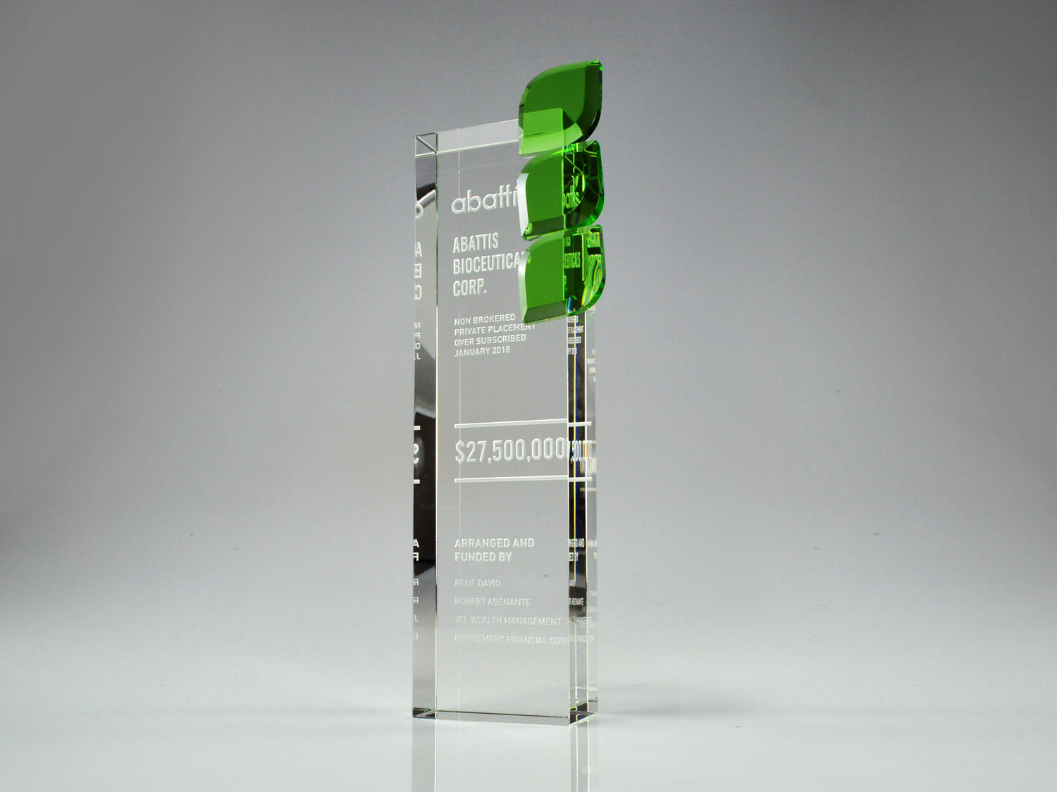 Do you want to celebrate your deal with customized deal toys and financial tombstones that are eye-catching, affordable, and easy to order? At Eclipse Awards, our all-inclusive pricing and streamlined made-to-order process delivers awesome results, every time, freeing you up to focus on other things! Every order includes a personalized design process that incorporates all of your details and branding. Simply choose any of the styles from our House Collection of premium crystal and eco-friendly pieces, and we will customize them for your deal, exactly as you wish!